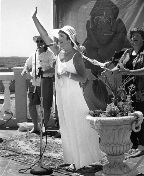 | Mimi Fariña performing a concert for a senior convalescent facility during the early years of Bread & Roses in the '70s. | Photo Darryll Schiff |